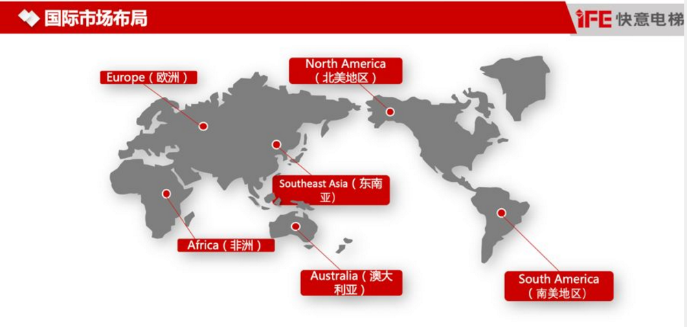 快意電梯是中國最早出口的中國電梯品牌,連續七年中國電梯品牌出口排名第一,全球設有7家全資子公司,產品行銷至35個國家和地區。