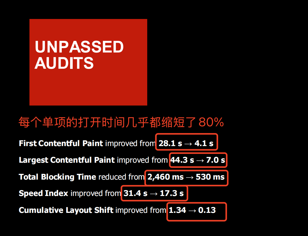 3首屏加載時間:  4.8  1.1秒(縮短77%